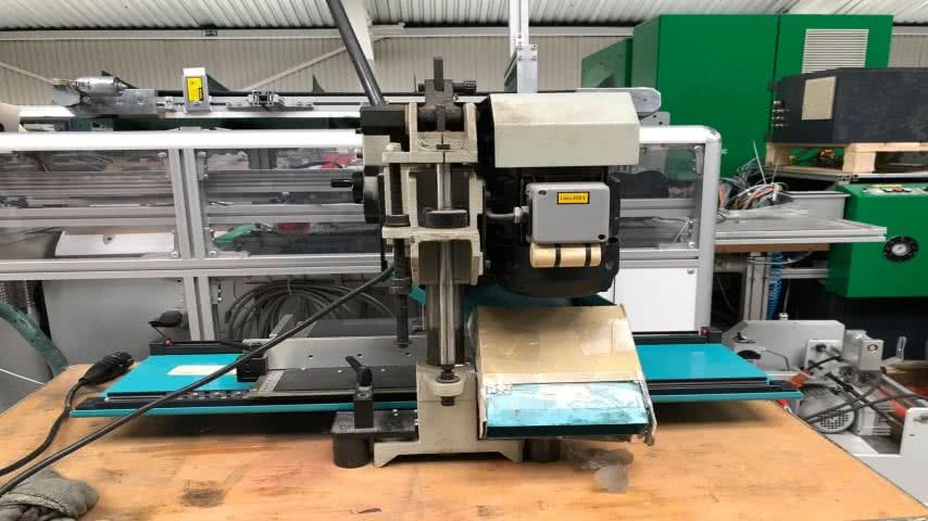 • Elcos 2 cabeza máquina de perforación es una máquina fabricada por Elcos en 1992, con un formato de 45 x 150 mm. Actualmente almacenada en Alemania, cuenta con una distancia de perforación de 45 - 150 mm, un espacio detrás de las cabezas de perforación de 100 mm, y es una perforadora de papel de doble cabeza. Opera con una palanca y es monofásica de 240 voltios. Los términos de entrega son FCA.