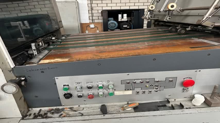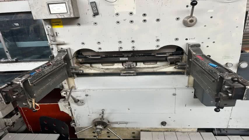 • Die Bobst SP 1120-E ist eine Stanzmaschine mit Abstreifer, die für effiziente und präzise Stanzvorgänge konzipiert ist. Dieses Modell wurde 1973 von Bobst hergestellt und befindet sich in Deutschland. Preise auf Anfrage. Es hat ein Format von 780 x 1120 mm und kann Bogengrößen von maximal 800 x 1120 mm bis minimal 380 x 450 cm verarbeiten. Die Maschine verfügt über eine Laufgeschwindigkeit von bis zu 6.000 Bogen pro Stunde und eine Stanzkraft von bis zu 300 Tonnen. Zu den weiteren Merkmalen gehören eine Plattform, Palettenzufuhr mit Non-Stop-Vorrichtung, Bogenzufuhr (OS) mit Doppelbogenerkennung und eine Mittellinie.