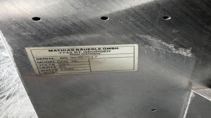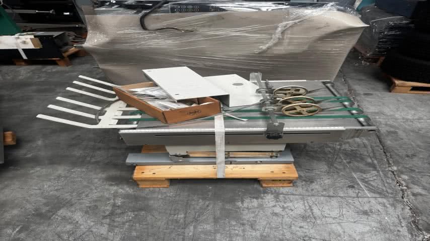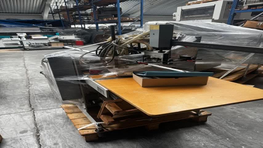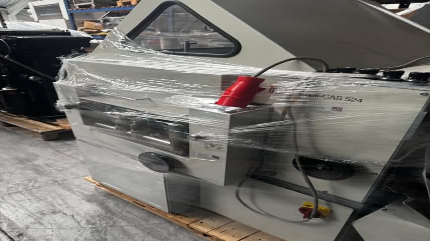 • Mathias Baeuerle CAS 524 SE, 1994 yılında üretilmiş, dört cepli ve düz yığın besleyiciye sahip bir makinedir. Tek bir çapraz kesme ünitesi ile donatılmıştır, işlevselliğini artırır. Bu model, 520 x 720 mm formatına sahiptir ve şu anda Almanya'da bulunmakta, depoda mevcuttur.