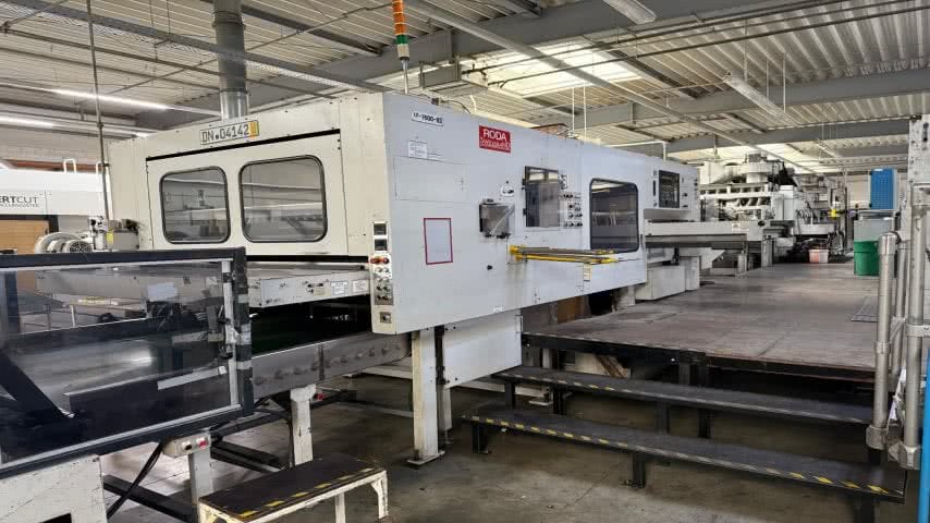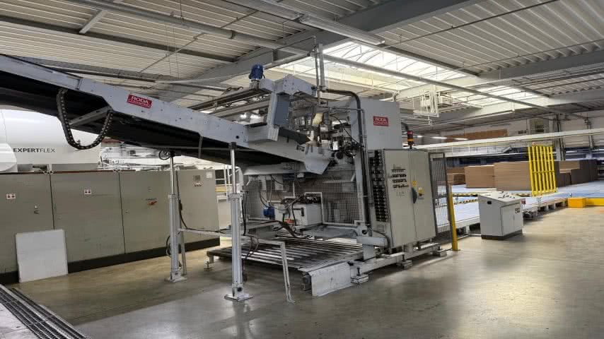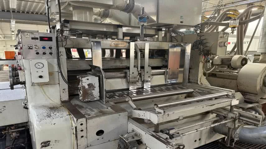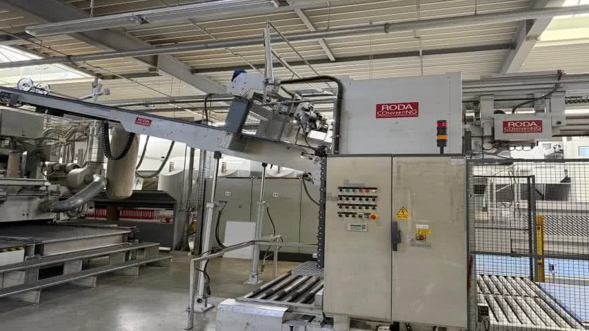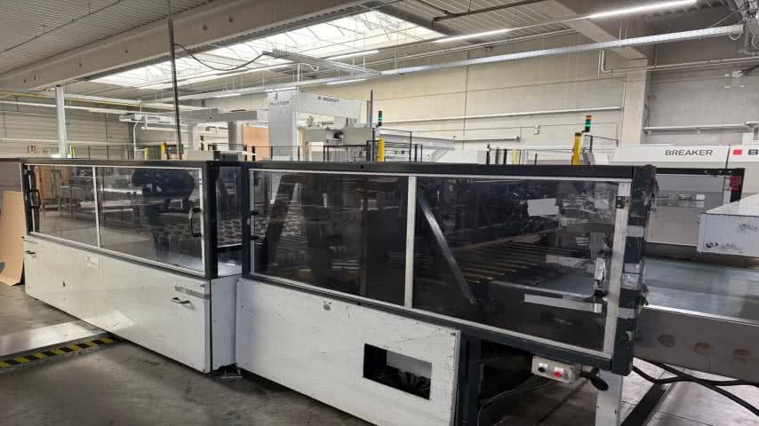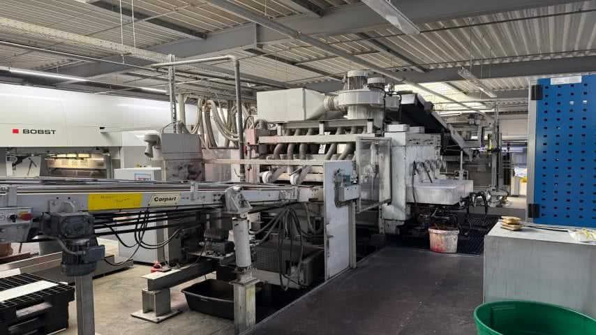 • We present this ASAHI CARTONMASTER AP 1600M-III FLAT BED DIE CUTTER, 1100mm x 1600mm / 43" x 63", complete with RODA Prefeeder, 2 CORPART Printing Units and QE Bundle Breakers, manufactured in 1991. The machine is in very good condition, in production, can be inspected at any time and is immediately available.
