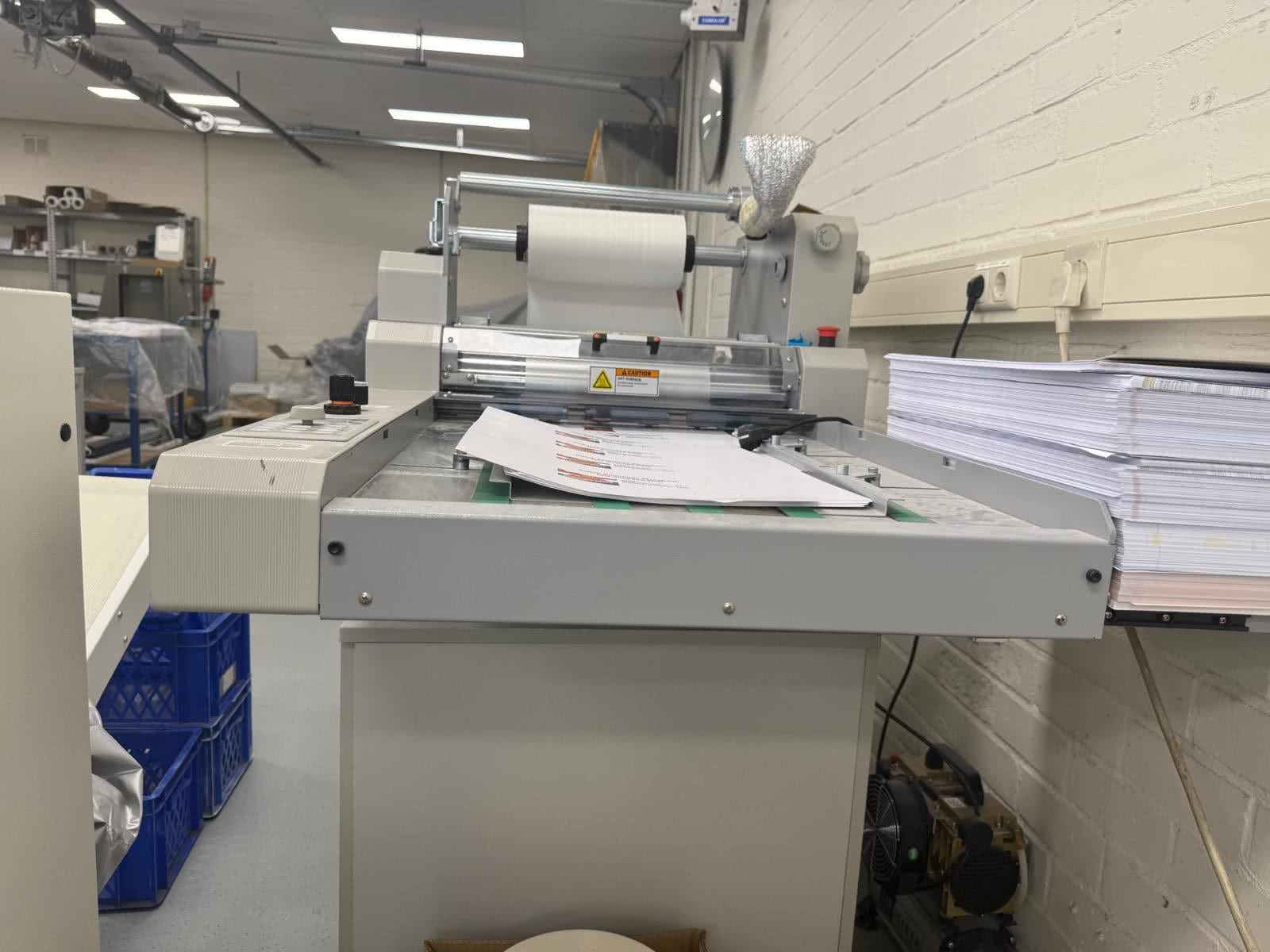 The Billhöfer MTS 104 is a high-performance laminating machine designed for professional print finishing. With a working size of 1045 x 1135 mm, it handles both large and small formats, supporting substrates from 150 to 450 g/sqm and foil thicknesses of 24 to 40 microns. Equipped with a flat pile feeder IA 20, suction feeder head, automatic rotary separator ITM 104, and jogger, the MTS 104 ensures smooth operation and consistent results. Its impressive speed range of 2500 to 4500 sheets per hour makes it ideal for demanding production environments. Currently located in Germany and actively used in a printshop, this machine combines reliability with versatility for a wide range of laminating applications.