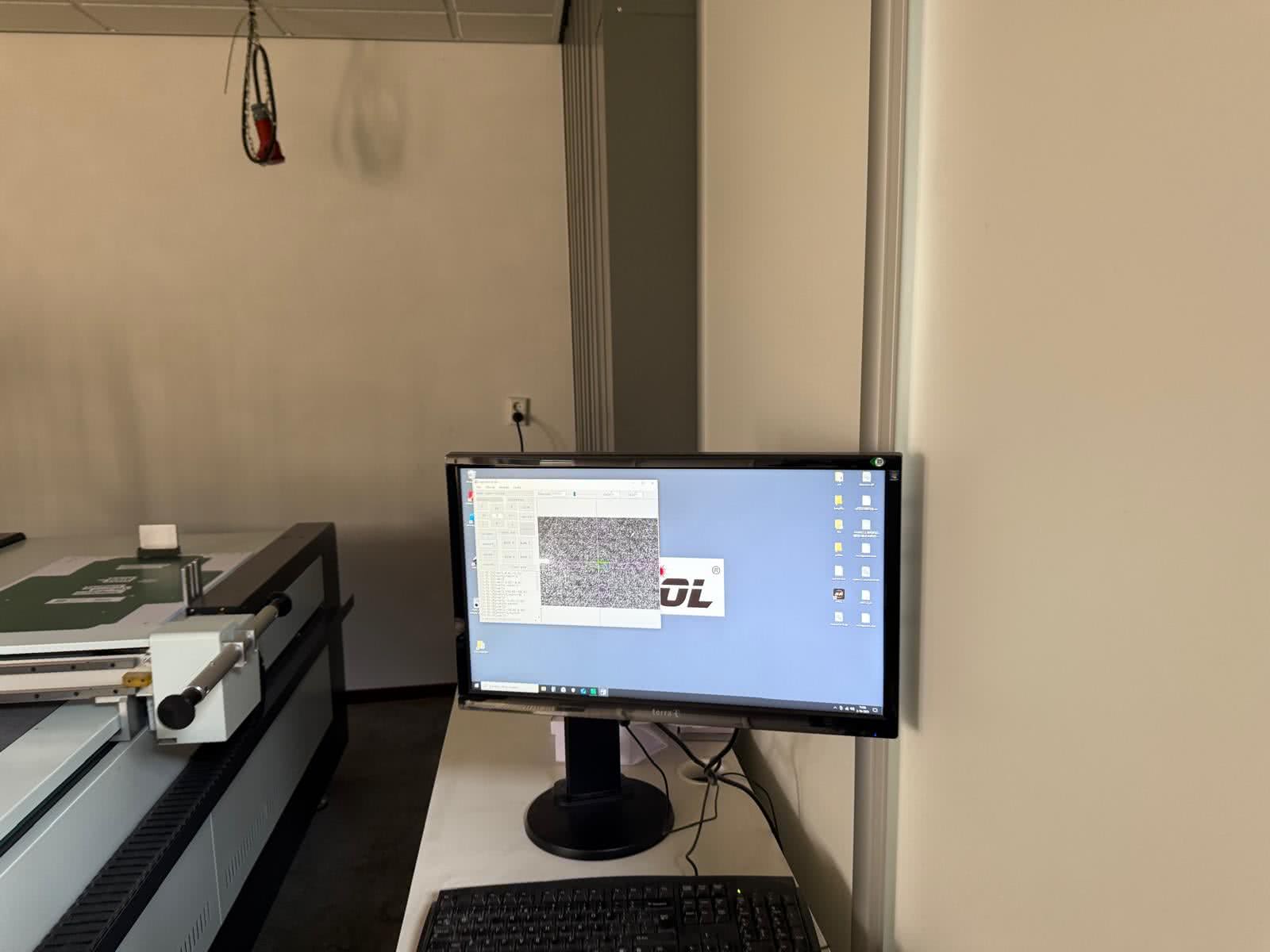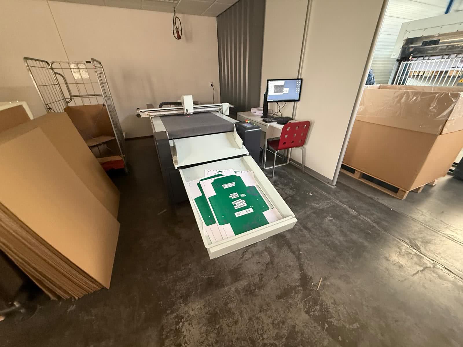 The AOL-1070 Cutting Flat Plotter, serial number 8473, is a multifunctional cutting system designed for precision and versatility in packaging, signage, and prototyping applications. With a working area of 700 x 1000 mm, this unit offers a compact footprint while delivering robust performance. Equipped with a multifunctional tool holder, the plotter features oscillating blades for clean and accurate cuts across a variety of materials. Additional tooling includes train inlet meters for controlled material feed, folding wheels for creasing operations, and a pen for labeling, making it suitable for complex workflows that require cutting, scoring, and marking in a single pass.
