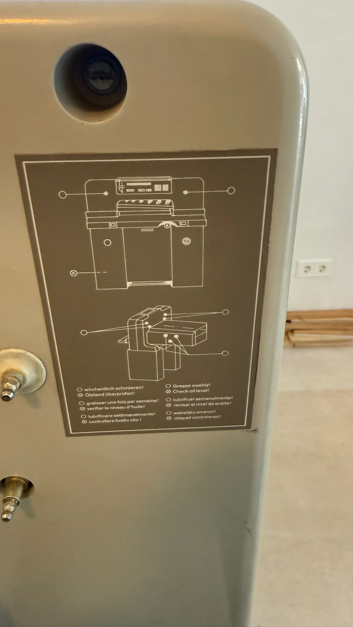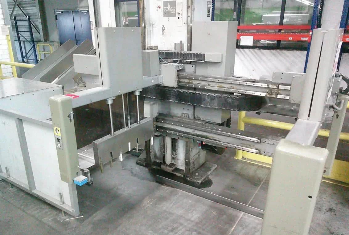 The Polar 115 ED, manufactured in 2003, is a robust and well-maintained machine with a serial number of 7331088 and a size of 1150 mm. Currently dismantled and located in Germany, this machine is in good condition and has been directly sourced from production, ensuring its reliability and performance. This model comes with a comprehensive set of equipment designed to optimize workflow and efficiency. Included is a Polar RA-4 jogger and a Polar TR90EL paper collecting station. The setup is arranged in an efficient L-shape, which enhances operational workflow. The required floor space for this setup is approximately 3,500 x 4,500 mm, making it suitable for medium to large-scale print finishing operations. The Polar 115 ED is known for its heavy-duty industrial build quality, characteristic of Polar machines. It features a complete cutting system that includes both the jogger and the collecting station, making it ready for immediate use in demanding print environments.