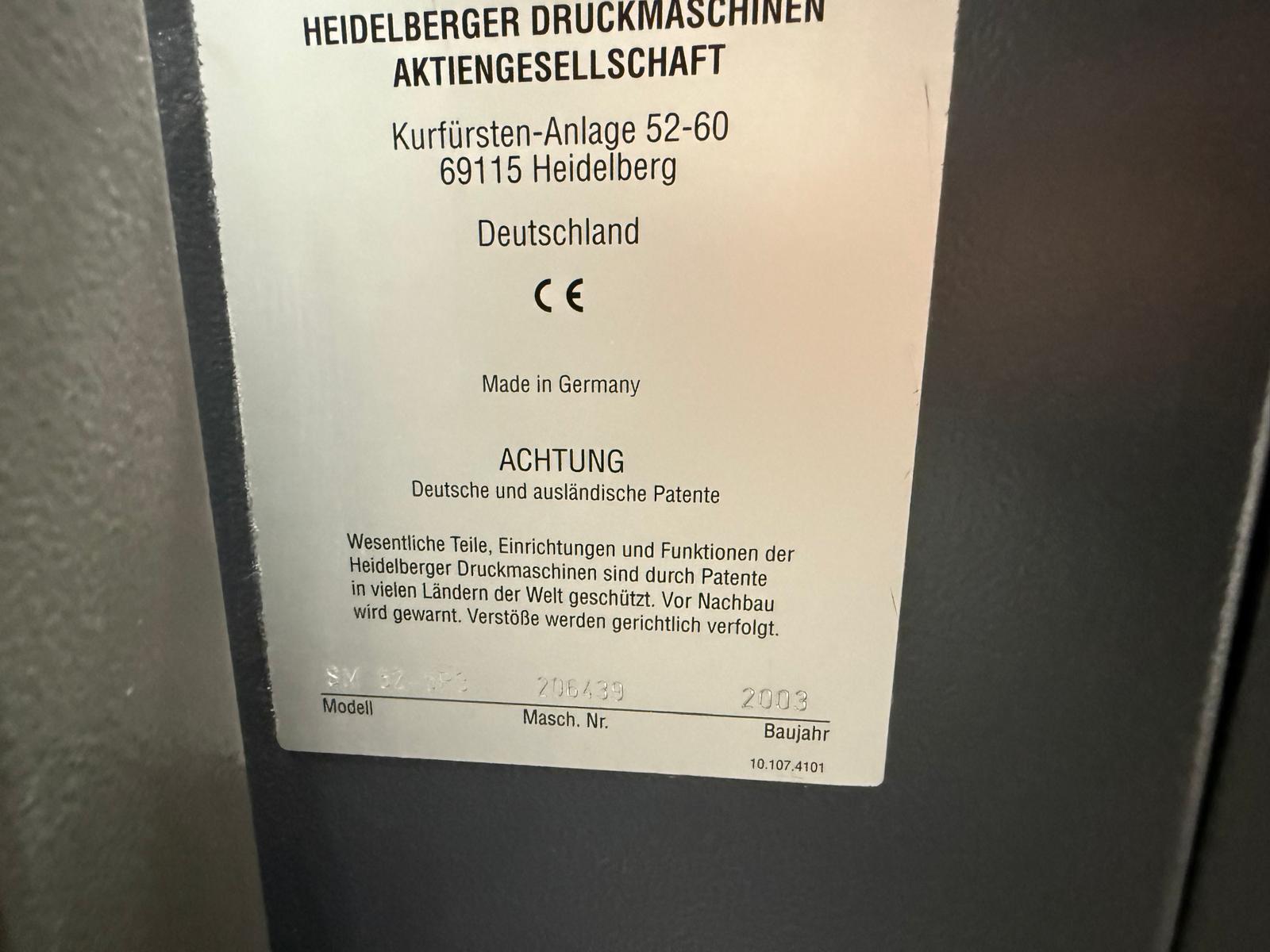 This Heidelberg SM 52-5-P is a robust and versatile offset printing press, manufactured in 2003. Designed for high-quality production, it features a sheet size of 370 x 520 mm and has already achieved an impressive 50 million impressions, demonstrating its reliability and endurance. Currently operational in a printshop in Germany, this machine is equipped with a range of advanced features to streamline and enhance the printing process. Key features include the CP 2000 center for precise control, Alcolor dampening for consistent ink-water balance, and a Technotrans cooling and recirculation device to maintain optimal operating temperatures. The press also boasts an Autoplate system for efficient plate changes, as well as comprehensive washing systems for blankets, rollers, and impression cylinders, ensuring clean and consistent print quality. Additionally, the machine is outfitted with a numbering and perforating unit, complete with two cams, wheels, and multiple numerators, offering flexibility for a variety of finishing tasks. Its perfecting capability (2/3 - 5/0) allows for both single- and double-sided printing, making it a versatile choice for diverse printing needs.