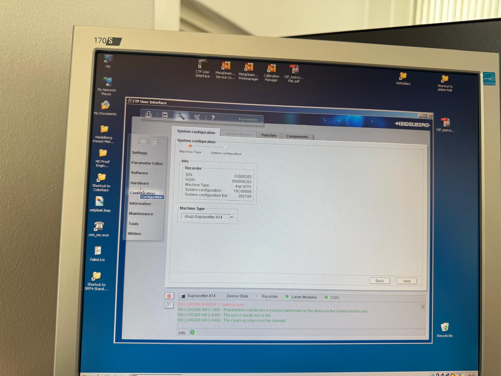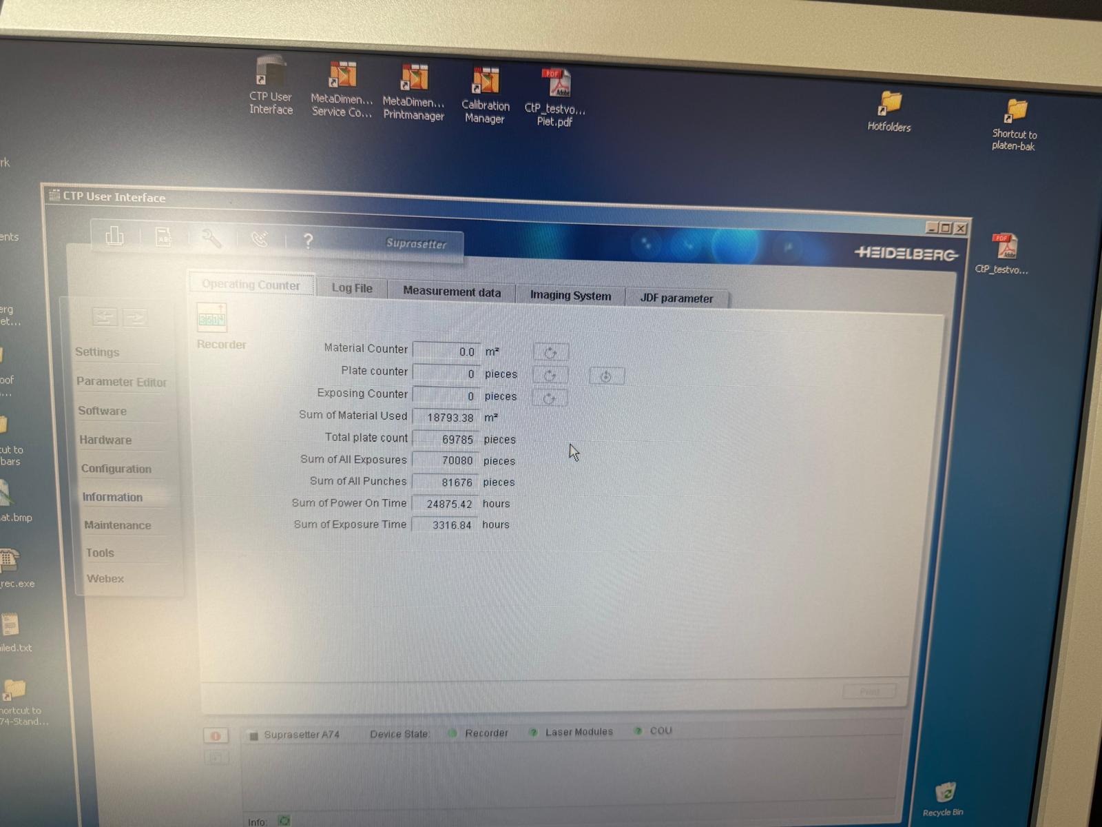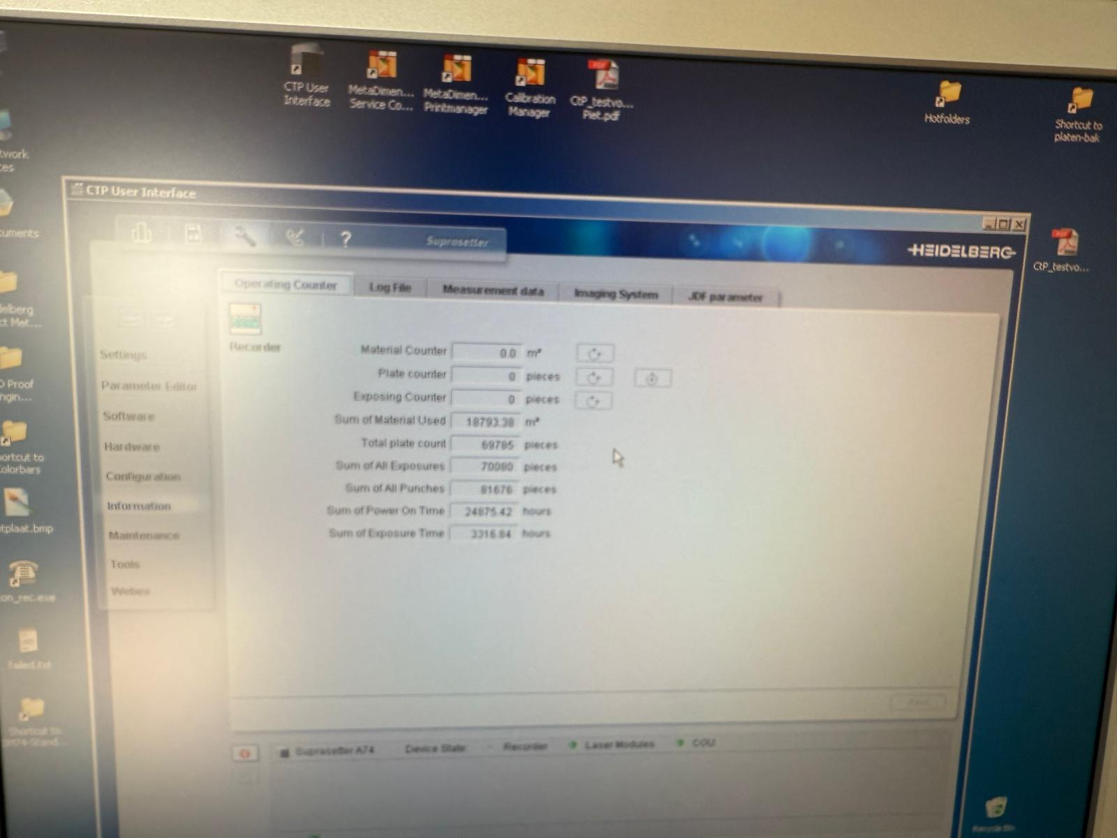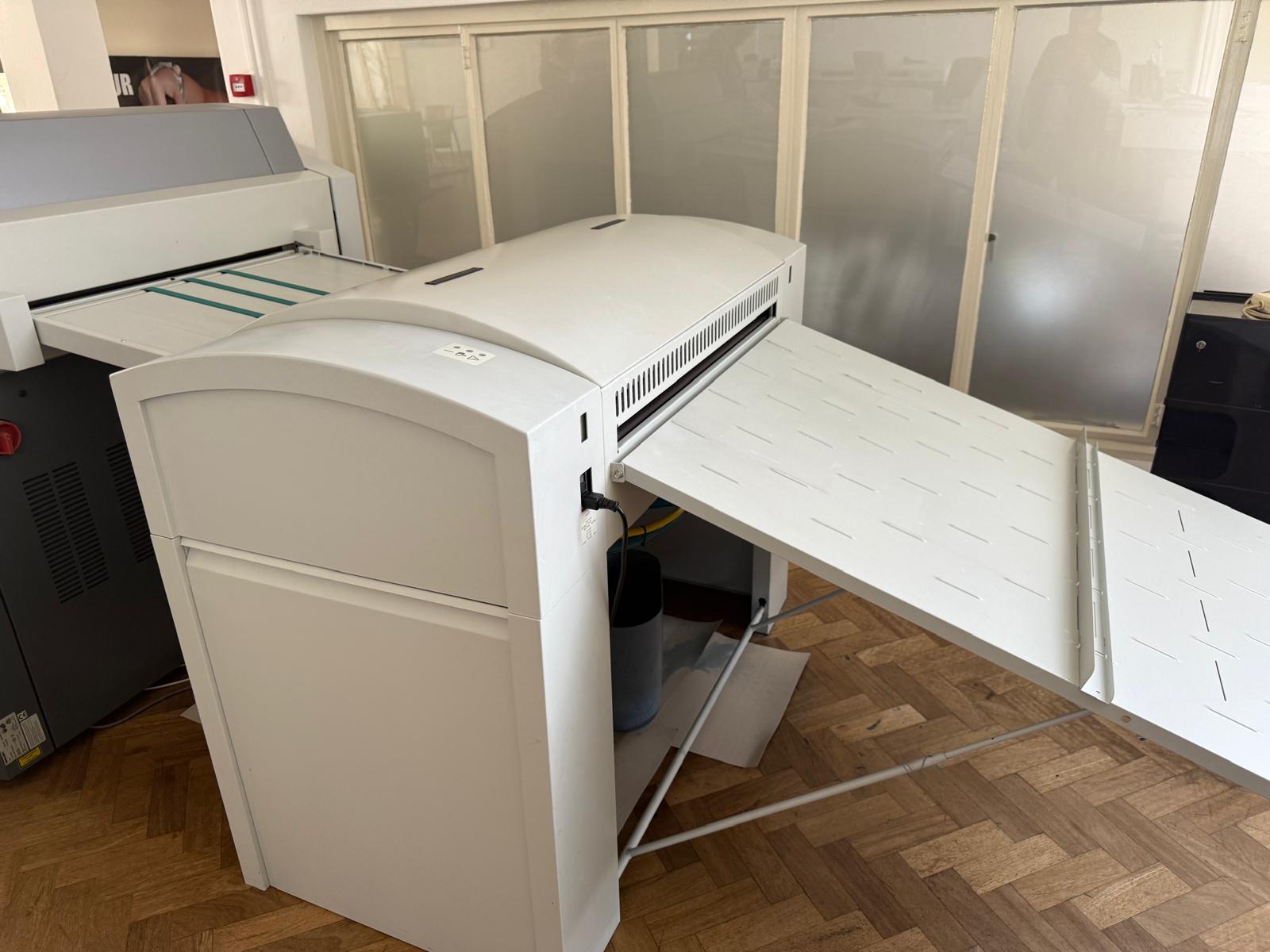 The Heidelberg Suprasetter A52/A74, produced in 2008, is a semi-automatic thermal Computer to Plate (CtP) system designed for high-quality plate production. With a plate size capacity of 670 x 740 mm, this unit is currently in operation at a printshop in Germany. The system is integrated with the Prinekt Workflow, including modules such as Prinect Meta Shooter, Prinect Meta Rip, Prinect MetaDimension, and Prinect Signastation, as well as PDF Toolbox for streamlined prepress processes. Key features include manual plate loading and automatic plate unloading, a Glunz & Jensen C&5 rubberizing unit with plate stacker, and a TECHKON SpectroPlate printing plate measuring device for precise quality control. The machine also benefits from annual major maintenance by Heidelberg, ensuring reliable performance. The serial number for this unit is PJ000705.