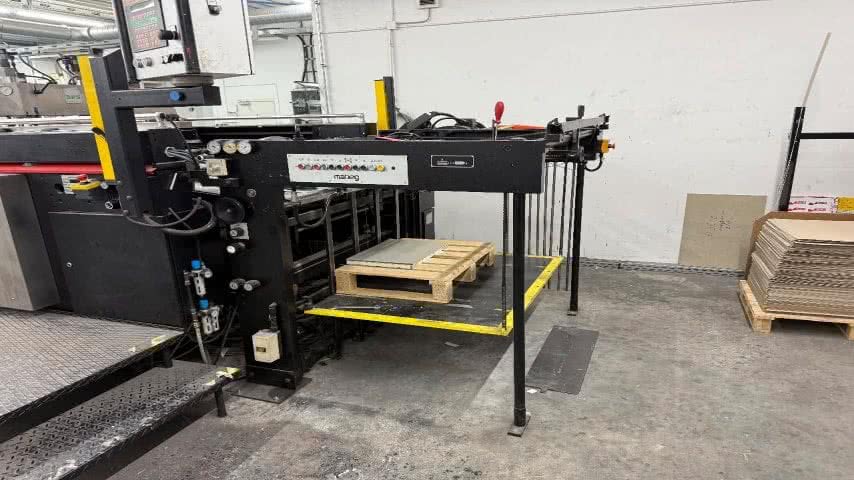 • La SPS Rehmus Vitessa Star G2 est une presse sérigraphique automatique à cylindres conçue pour les applications d'impression industrielle haute performance. Fabriquée en 2001, cette machine est conçue pour traiter une large gamme de travaux d'impression avec une efficacité impressionnante. Elle prend en charge des feuilles de format maximal de 790 x 1040 mm et minimal de 315 x 440 mm, ce qui la rend polyvalente pour différents supports et formats d'impression. L'épaisseur des matériaux qu'elle peut traiter varie de 0,1 à 0,8 mm, offrant une grande flexibilité de production. Cette presse offre une vitesse d'impression allant jusqu'à 4 000 feuilles par heure, ce qui la rend idéale pour les opérations d'impression à grand volume. Le système de changement rapide de trame, utilisant des pinces pneumatiques, réduit considérablement les temps d'arrêt, tandis que le réglage fin central en 3 points assure un alignement précis pour une qualité d'impression supérieure. La machine est logée dans un châssis robuste et résistant, conçu pour résister aux exigences d'une production industrielle continue. La presse est livrée avec plusieurs composants essentiels, dont un margeur Mabeg PAL 3 (année 2001), un sécheur Svecia SHJD (année 1985) et un empileur Svecia SAP-A (année 1985). De plus, la machine est équipée d'un sécheur UV et d'une unité de contrôle, lui permettant de gérer diverses applications d'impression, notamment le séchage UV. Actuellement démontée et stockée en Allemagne, la Vitessa Star G2 reste un choix judicieux pour les entreprises à la recherche d'une solution de sérigraphie performante et rapide.