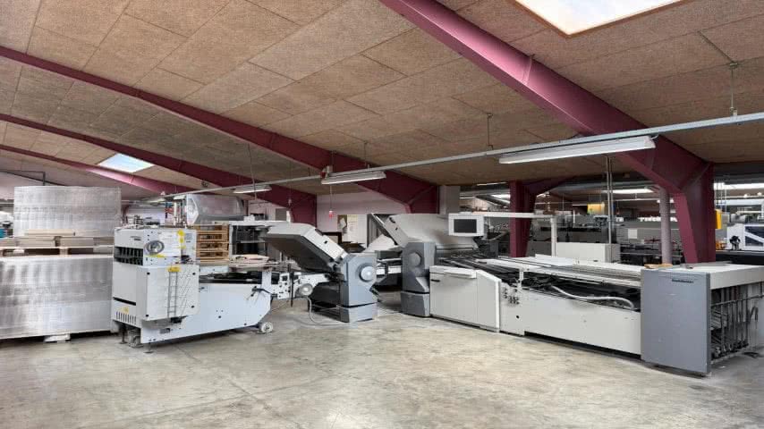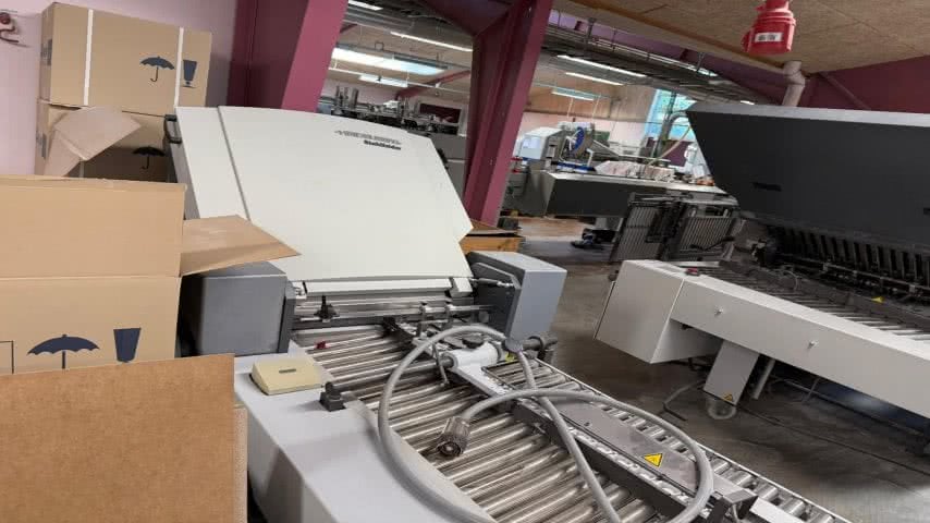 • La Heidelberg Stahlfolder TH 82/6-4-2 - RFH, fabricada en 2007, es una plegadora de alta calidad con un tamaño de 820 mm. Actualmente desmontada y ubicada en Alemania, esta máquina cuenta con un alimentador rotativo RFH-82. Incluye tres estaciones: la primera con 6 bolsillos de 82 cm con ajuste automático, la segunda con 4 bolsillos de 66 cm con ajuste automático y la tercera con 2 bolsillos de 56 cm con ajuste automático. La máquina también incluye una salida de apilado SBP 66, un monitor táctil y un sistema de control MCT. El modelo específico se identifica como TH82/6/4/2 con el número de máquina FH.HACO-00951.
