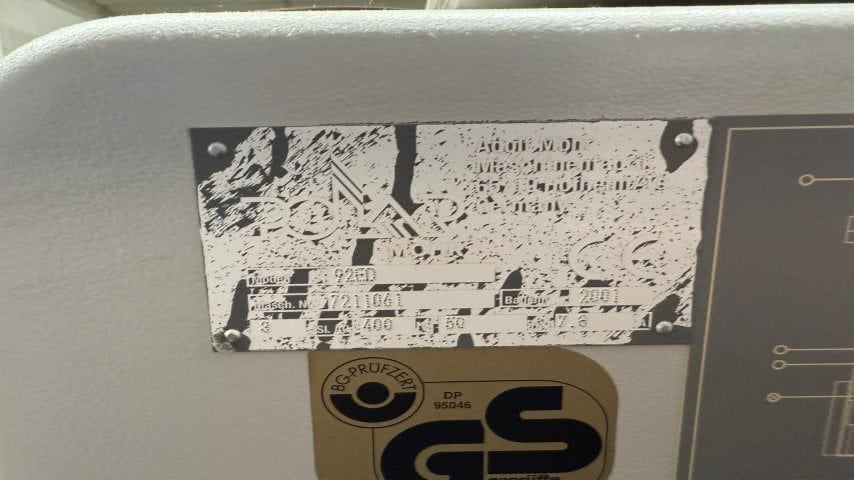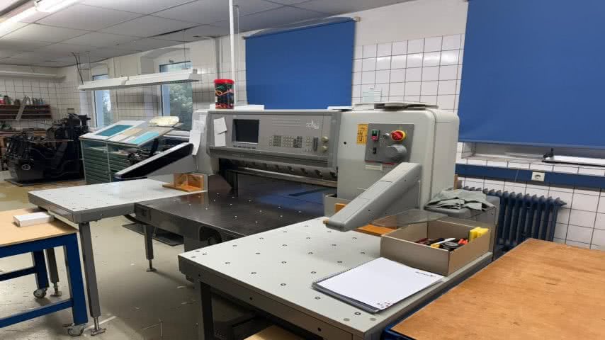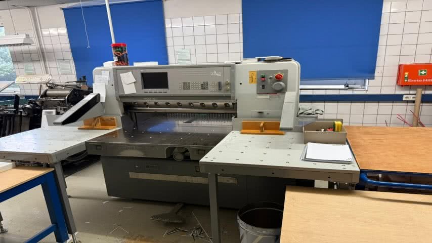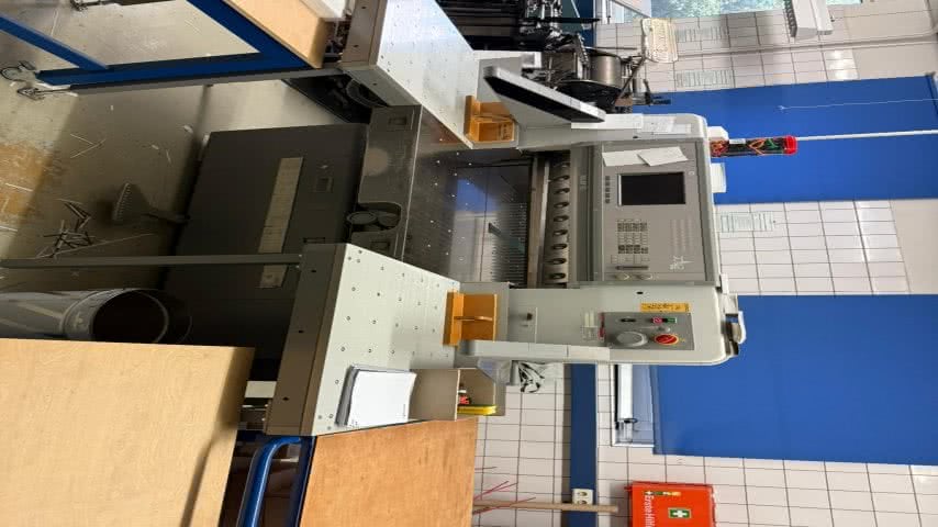 • Cette machine est une Polar 92 ED, fabriquée en 2001 et portant le numéro de série 7211061. Conçue pour une taille de 920 mm, elle est actuellement en stock en Allemagne. Le prix est disponible sur demande. La machine est en bon état et ne présente aucun dommage. Elle est équipée de tables latérales avec air comprimé à gauche et à droite, d'un écran de contrôle et d'un programme de contrôle ED. La surface de la table est en acier inoxydable et mesure 72 x 87 cm.