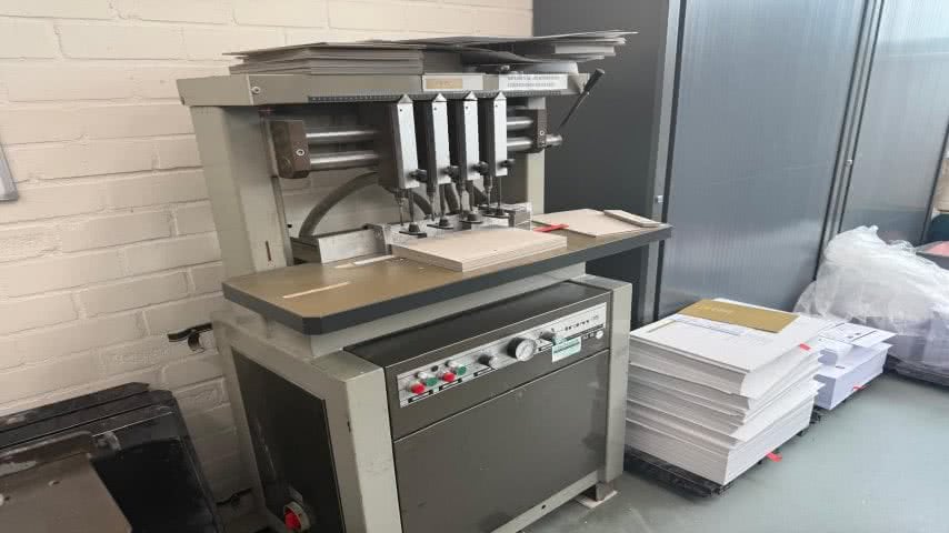 • La Josef Foellmer Iram 16, número de serie 2037, es una robusta perforadora de papel de cuatro cabezales diseñada para ofrecer precisión y eficiencia en entornos de acabado profesional. Actualmente ubicada en una imprenta en Alemania, la unidad se encuentra en buen estado sin daños, lo que demuestra su durabilidad y un mantenimiento minucioso. Con sus cuatro cabezales de perforación, la Iram 16 ofrece flexibilidad para una variedad de patrones de perforación y aplicaciones, lo que la convierte en una solución fiable para operaciones de encuadernación y acabado que requieren precisión, consistencia y productividad.