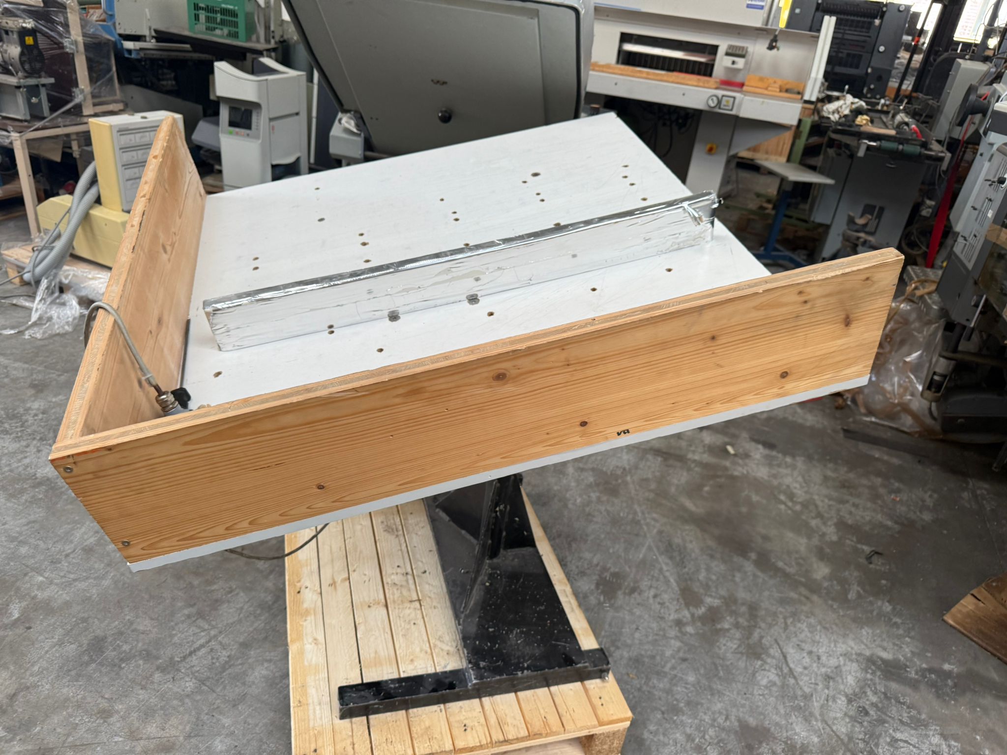 Das Heidelberg Abkantgerät Auto, Baujahr 1999, ist eine Maschine mit einem Format von 400 x 510 mm bis 790 x 1045 mm. Es ist derzeit auf Lager und befindet sich in Deutschland. Dieses automatische Plattenbiegegerät hat eine Höhe von 142 cm und eine Breite von 69 cm. Es ist ein Standmodell für SM52, SM 74 und SM 102/CD (Autoplate) und ist mit dem Auto-Multiplate HDM und dem Bacher-System ausgestattet. Die Lieferbedingungen sind FCA.