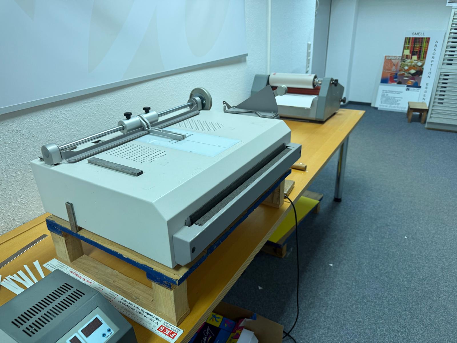 Der GMP PROTOPIC II - 540 Laminator (Seriennummer XK54S30033) ist ein professionelles Laminiersystem für hochwertige Weiterverarbeitungsanwendungen. Mit einer Arbeitsbreite von 540 mm verarbeitet er Papierformate bis 540 x 800 mm und bis 210 x 200 mm und ist damit vielseitig einsetzbar. Geeignet für Papierstärken von 120 bis 350 g/m², gewährleistet das Gerät gleichbleibende Laminierergebnisse auf unterschiedlichen Substraten. Das Gerät befindet sich derzeit in einer Druckerei in Deutschland und ist in gutem Zustand und weist keine Beschädigungen auf. Dies zeugt von sorgfältiger Nutzung und Wartung. Kompakt, zuverlässig und effizient – ??der GMP PROTOPIC II - 540 Laminator ist eine praktische Lösung für professionelle Druckweiterverarbeitungsumgebungen, die eine langlebige und präzise Laminierung erfordern.