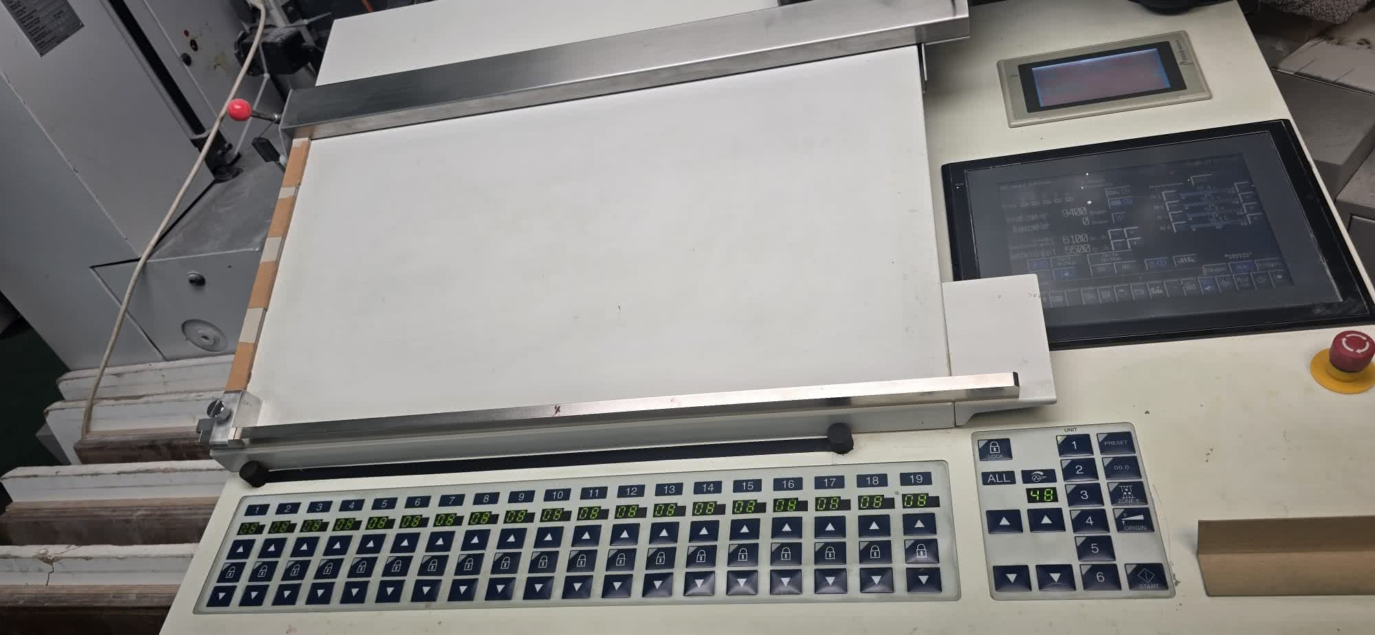 The Sakurai 466 SIP, manufactured in 2005 and bearing serial number HF113105, is a four-color offset press with a maximum sheet size of 470 x 660 mm and a total of 25 million impressions. Currently in operation at a printshop in Germany, this press is equipped with the DTC Delivery Top Console featuring a touch screen and full remote-control operation. It incorporates advanced automation systems such as SIS (Sakurai Interactive System) for make-ready, SAS (Sakurai Auto Set) for paper size and thickness adjustment, and SPC (semi-automatic plate change), along with a plate running register system and cocking register for precise alignment. The press is fitted with automatic washers for blanket cylinders and inking rollers, Olivermatic dampening, and a Baldwin refrigeration and Bal Control system to ensure consistent print quality. Its feeder includes a suction-belt feed table with electronic double sheet and side lay detectors, while the chromed impression cylinders enhance durability and performance. The machine also features a perfector for 4/0 or 2/2 printing with full automation, semi-high pile delivery, and a powder spray system. Included with the press are a plate punch, compressor, tools, and manuals, making this Sakurai 466 SIP a complete and well-equipped solution for high-quality, efficient offset production.
