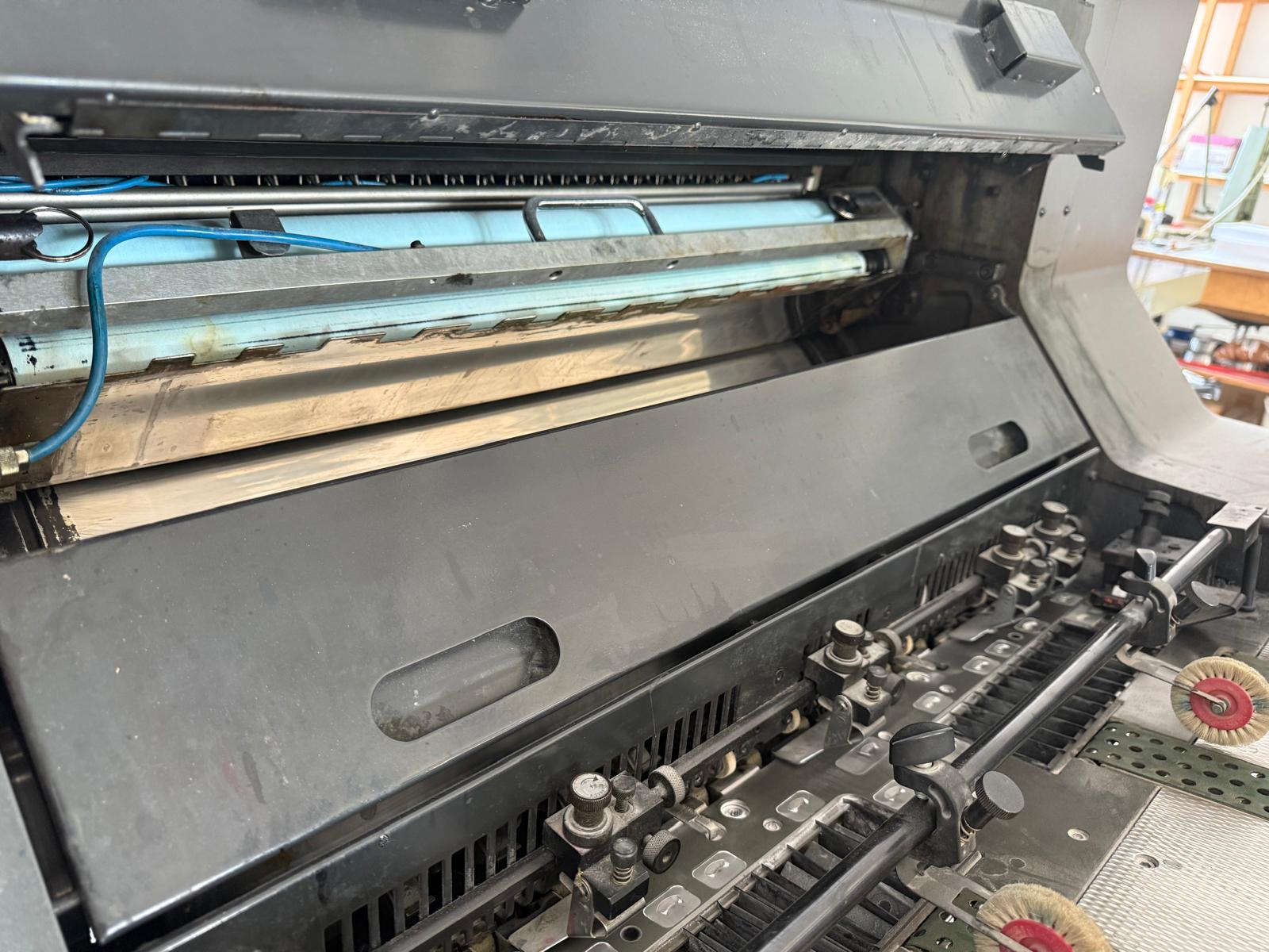 Komori Sprint 26, 480 x 660 mm format boyutuna sahip güvenilir bir ofset baskı makinesidir. Almanya'da bulunan ve şu anda bir matbaada faaliyet gösteren bu makine, herhangi bir hasar belirtisi göstermeden iyi durumdadır. Alkol nemlendirme sistemiyle tutarlı baskı kalitesi ve verimli performans sağlar.