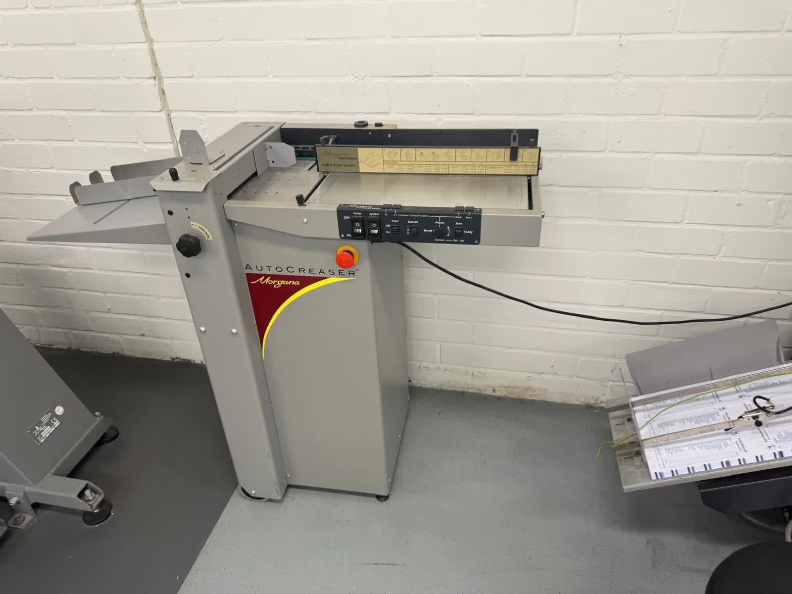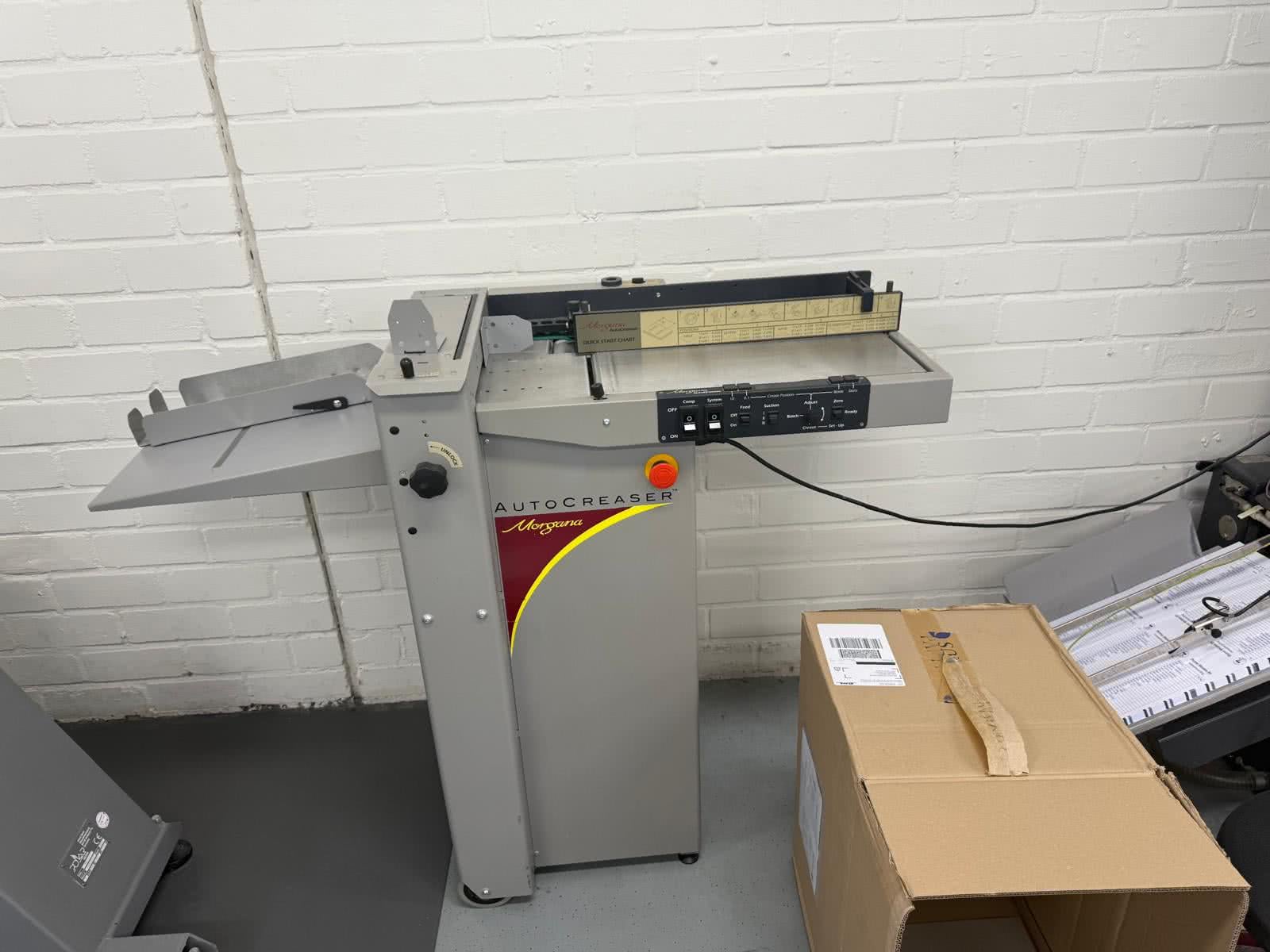 La Morgana AUTOCREASER 708202, número de serie 01021FCAE, es una plegadora profesional diseñada para la precisión y productividad en el acabado de impresión. Con un tamaño máximo de hoja de 720 x 320 mm y un mínimo de 140 x 210 mm, ofrece flexibilidad para una amplia gama de aplicaciones. El sistema puede producir hasta nueve plegados por hoja, lo que garantiza resultados precisos y consistentes incluso en trabajos exigentes. Con una velocidad variable de 1200 a 1800 hojas por hora, la AUTOCREASER es adecuada para gramajes de 120 a 300 g/m², lo que la hace ideal para folletos, cubiertas, tarjetas y otros materiales impresos de alta calidad. Actualmente ubicada en una imprenta en Alemania, la máquina se encuentra en excelentes condiciones de funcionamiento y sigue siendo una solución fiable para entornos de acabado profesional.