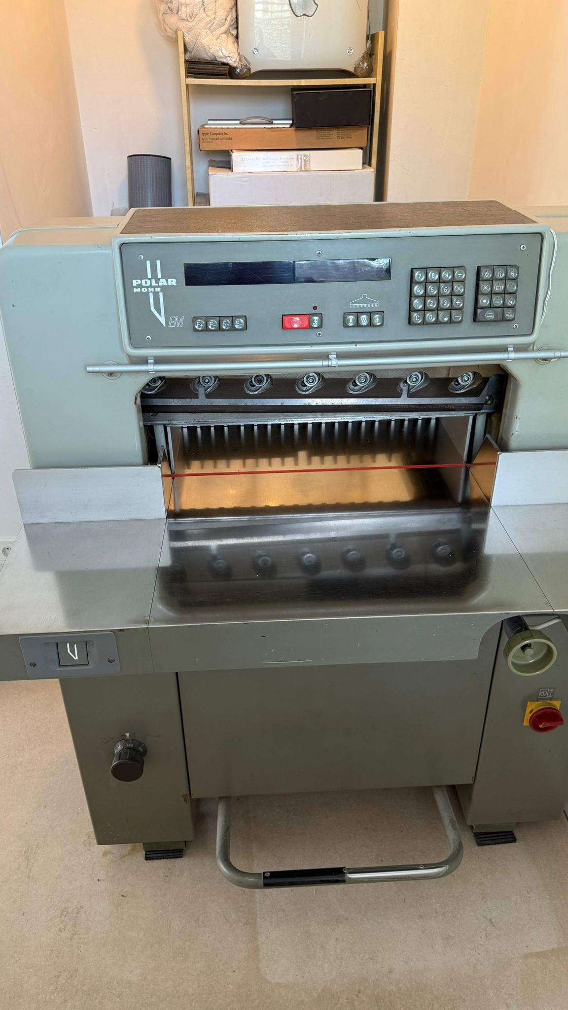 The Polar 115 ED, manufactured in 2003, is a robust and well-maintained machine with a serial number of 7331088 and a size of 1150 mm. Currently dismantled and located in Germany, this machine is in good condition and has been directly sourced from production, ensuring its reliability and performance. This model comes with a comprehensive set of equipment designed to optimize workflow and efficiency. Included is a Polar RA-4 jogger and a Polar TR90EL paper collecting station. The setup is arranged in an efficient L-shape, which enhances operational workflow. The required floor space for this setup is approximately 3,500 x 4,500 mm, making it suitable for medium to large-scale print finishing operations. The Polar 115 ED is known for its heavy-duty industrial build quality, characteristic of Polar machines. It features a complete cutting system that includes both the jogger and the collecting station, making it ready for immediate use in demanding print environments.