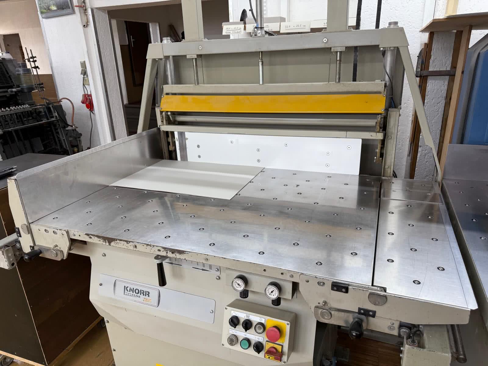 El VITS QRV Variocut, fabricado en 1995, es una máquina con un formato de 1020 mm, actualmente en stock y ubicada en Alemania. Cuenta con un ancho de calendario de 1020 mm y es de tipo Micromatic, capaz de manejar pesos de papel entre 65 y 120 gramos. La PC y el control del filo de corte fueron reemplazados en 2012. La máquina opera a una velocidad máxima de 220 metros por minuto con control de registro e incluye una unidad de gofrado de 2005. Ofrece una precisión de corte de ±0.3 mm y está equipada con control PC Unico. Los términos de entrega son FCA.