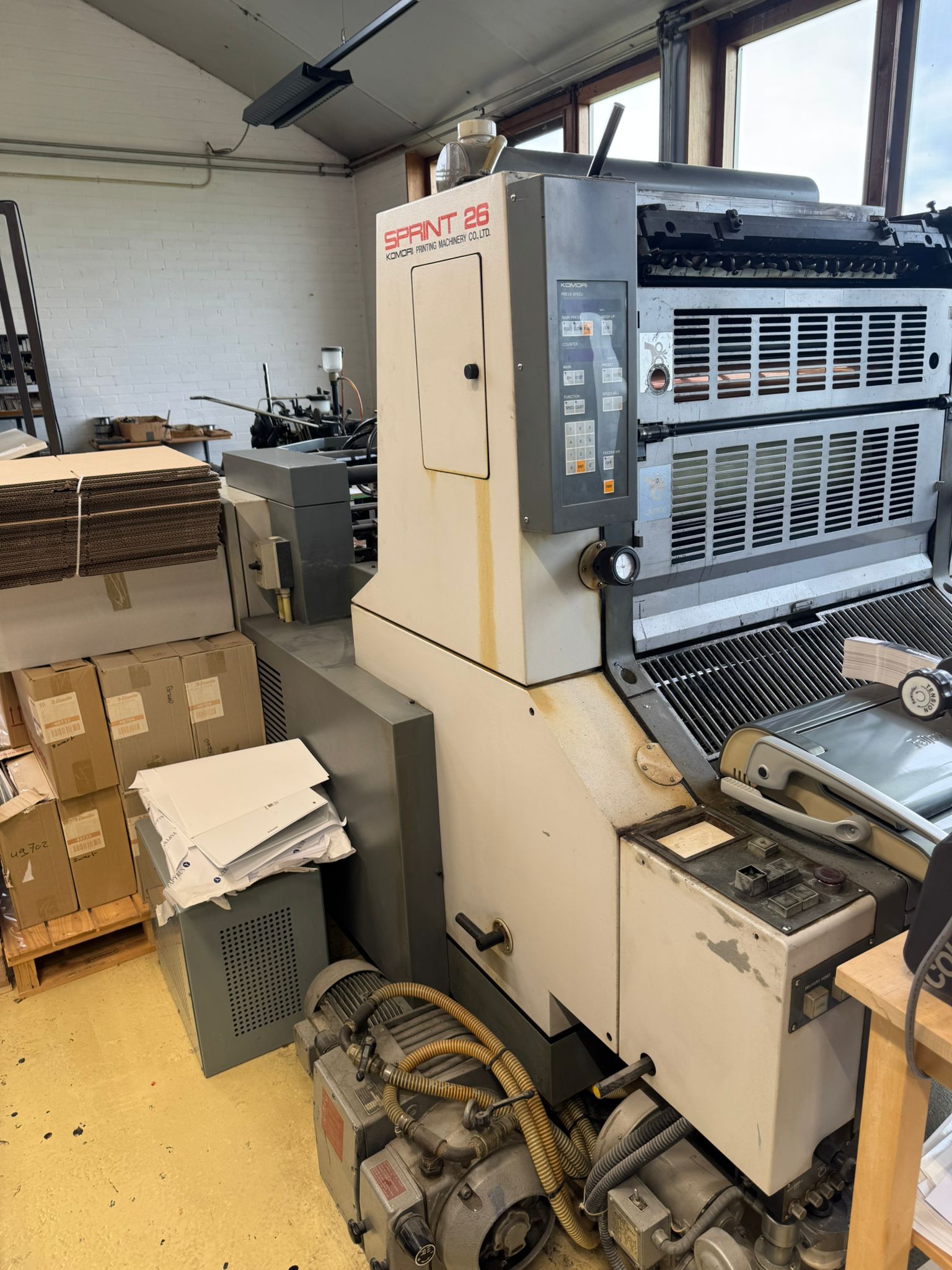 The Komori Sprint 26 is a reliable offset printing press with a format size of 480 x 660 mm. Located in Germany and currently operating in a printshop, this machine is in good condition with no signs of damage. It features an alcohol dampening system, ensuring consistent print quality and efficient performance.
